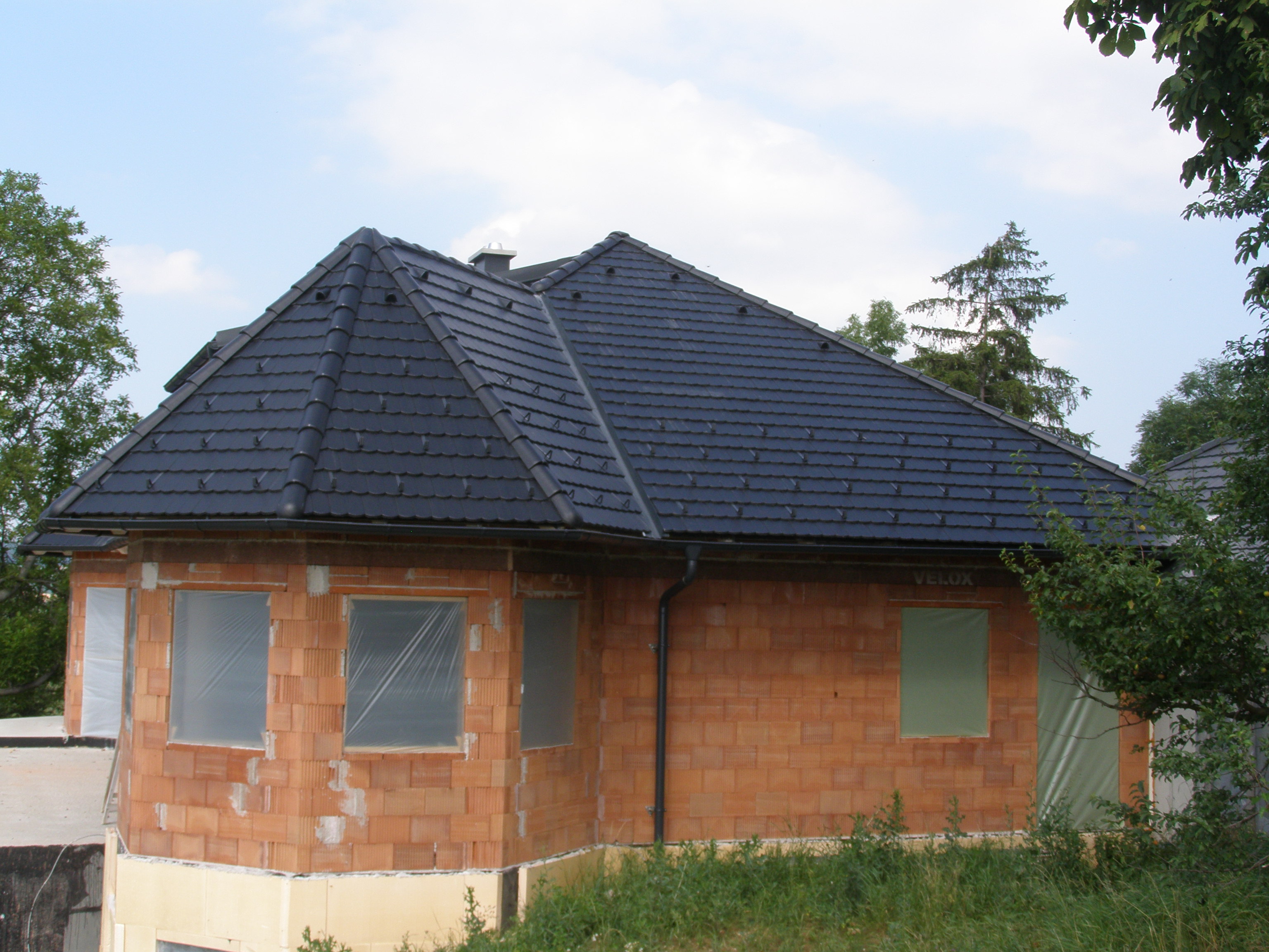 Nemrégiben volt alkalmunk egy viszonylag nagy tetőt Bramac Reviva ében fekete cseréppel fedni.